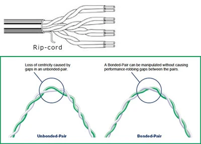 カテゴリ5e BELDEN 1700A Bonded-Pairケーブルは、BELDEN社製の1700A Bonded-Pairケーブルを採用。Bonded-Pairケーブルはペア線が融着加工されている為、撚りが戻りにくく常に安定した電気信号を送信します(撚り戻しにも専用工具が必要です)。