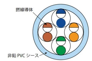 | 導体 | 単線 0.545mm x 4対 AWG24 0.2SQ相当 |