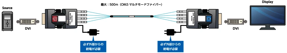 ※DVI光エクステンダーは4芯の接続が必要なため、2芯パッチケーブルを2本ご使用ください。
