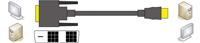 HDMI-DVI変換ケーブルは、HDMI端子を持つパソコン等とDVI端子を持つ液晶モニター等の接続を可能にするケーブルです。最近のパソコンにはVGA端子の他にHDMI端子を持つ製品が登場しており、モニター側がDVI端子を持っていればデジタル画像にて楽しむことができます。