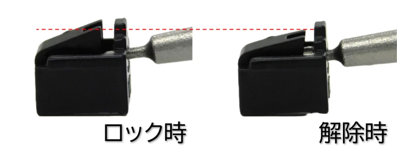 RJ45ポートロック本体は樹脂製で解除キーは金属製のため、解除時に本体とキーの摩擦で本体のキー接触部分が摩耗する場合があります。