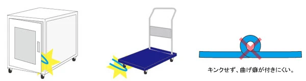 うっかりケーブルを挟み込んでも断線の可能性を低減。キンクせず、曲げ癖が付きにくい。