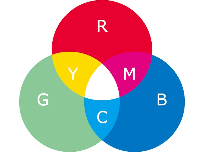 RGBとはテレビやビデオカメラで画像再現に使用されている色の再現方法のひとつでR(赤)、G(緑)、B(青)の光の三原色のことである。