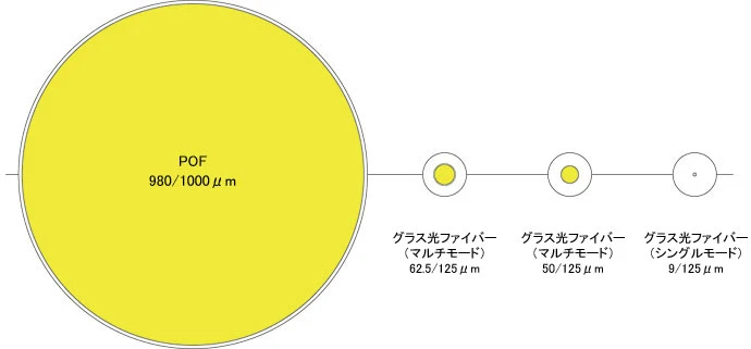プラスチック光ファイバーケーブル コア/クラッド径比較イメージ