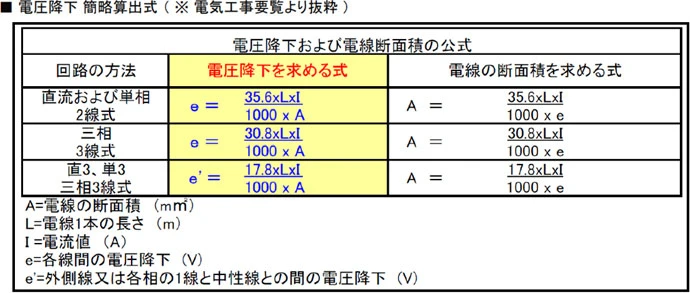 電圧降下計算の方法(簡略算出式)